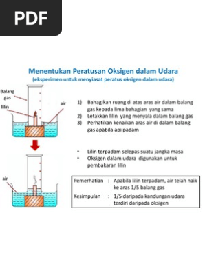 Menentukan peratusan oksigen dalam udara. Gas-gas dalam udara terdiri daripada 78 nitrogen 21 oksigen dan 1 wap air 003 karbon dioksida 097 gas nadir habuk mikroorganisma gas-gas lain. Gambar di bawah ini pula dikongsi oleh Cikgu Shawany Shabir hasil eksperimen bersama anak muridnya.