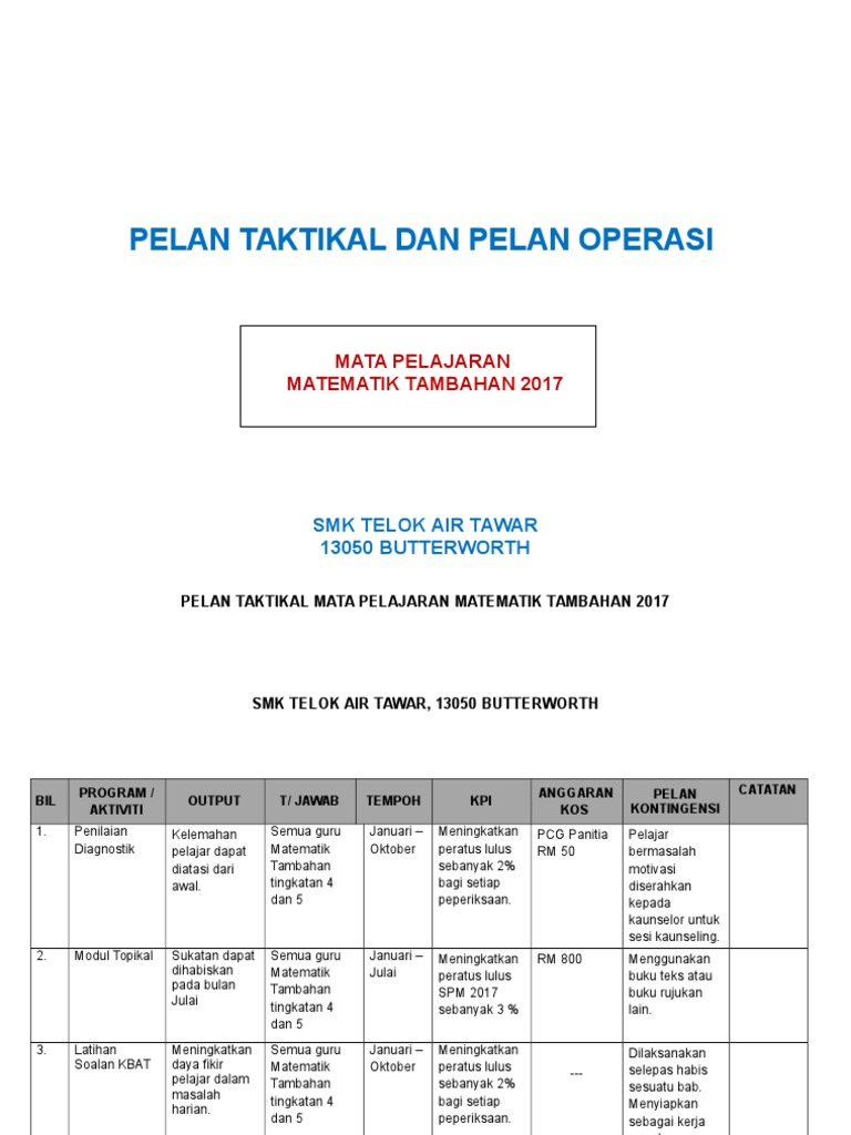 Pelan Taktikal Dan Operasi Matematik Tambahan