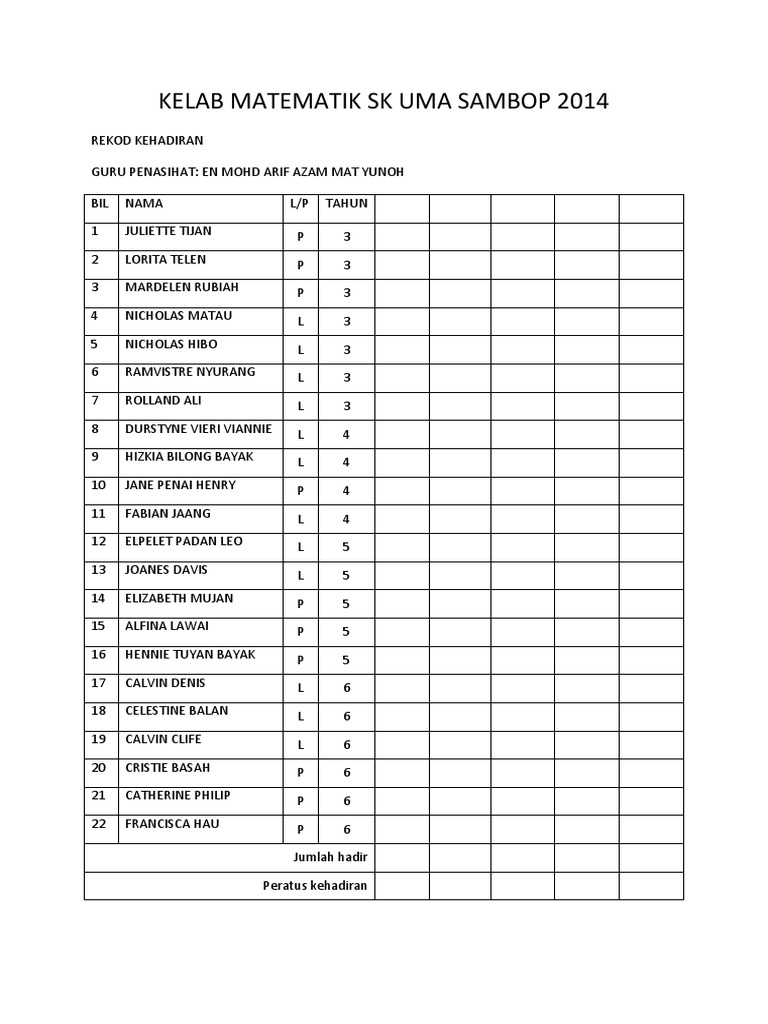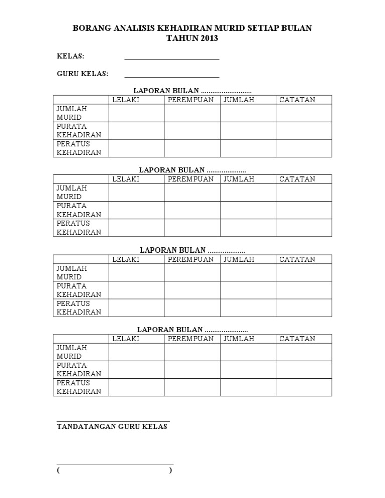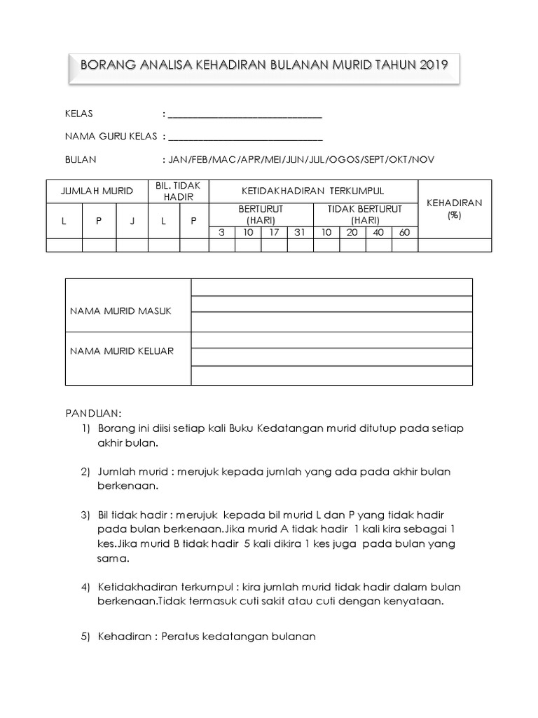 KEMENJADIAN SAHSIAH MURID 531 Purata Peratus Kehadiran Murid ke Sekolah bagi Tahun Terkini. Scribd ist die weltweit größte soziale Plattform zum Lesen und Veröffentlichen. Borang analisa kehadiran murid tahun 2015 tingkatan.
